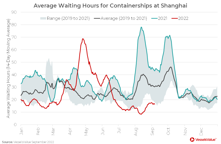 On 5th April 2022, Shanghai, the biggest city in the biggest market for most commodity Shipping sectors, went into lockdown. As 26 million people endured eight weeks of hardship, we at VesselsValue quickly realised we had to revise our methodology for measuring congestion. Simply counting vessels waiting outside Shanghai was fraught with pitfalls. Other large ports, such as Ningbo and Zhoushan to name but two, are in relatively close proximity and share an anchorage. Vessels that wait outside Shanghai may never call there and, when congestion is bad, are increasingly likely to divert to one of the others. Hence, we hit upon the idea of measuring waiting times only for those vessels that complete their journeys in the port.