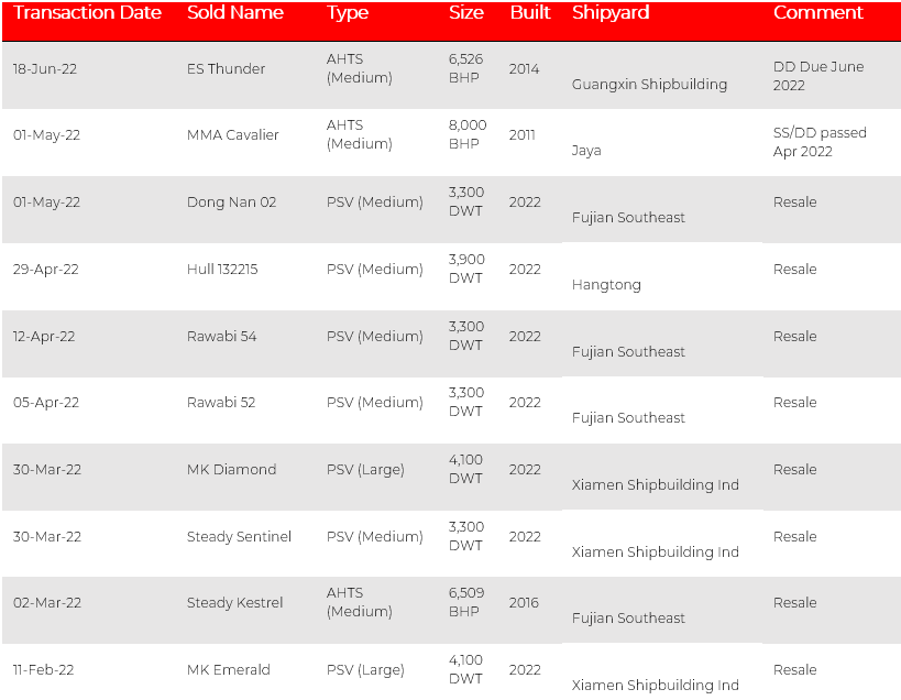 An outstanding effort by Rawabi Holding’s commercial team, making up 52% of the Middle Eastern Gulf purchases this year alone for OSVs. Figure 1.2 are some of their most notable purchases from 2022.