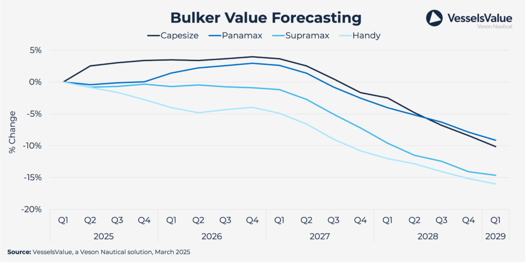 Bulker supply growth is expected to remain relatively low due to minimal ordering activity in recent years. However, the market balance is anticipated to soften in 2025 as supply growth temporarily outpaces demand.
