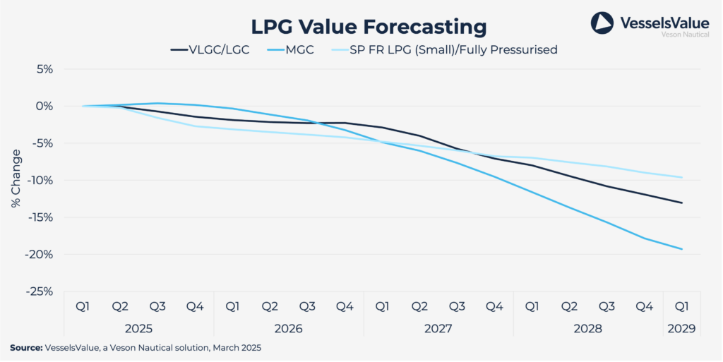 The net fleet growth for VLGCs/VLACs reached 10.9% in 2024, and we expect the average yearly growth to be 7.5% in our forecast period.