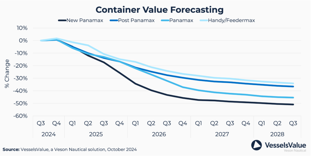 Bulker values have increased significantly in the last year due to improving sentiment, and despite solid freight rate expectations, the potential upside looks limited due to already elevated levels. Secondhand values are also expected to receive downward pressure from declining newbuilding prices when the ordering activity of Container and LNG vessels subside.