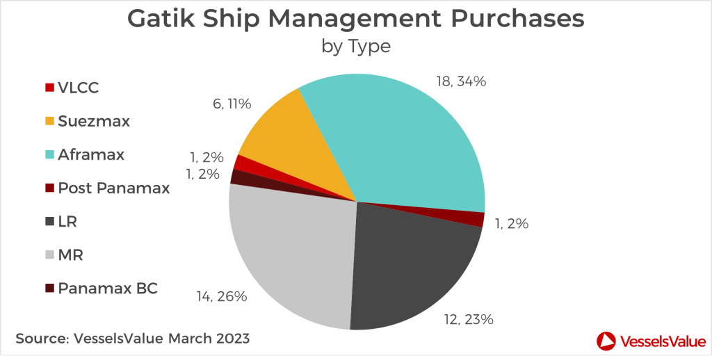 India based Gatik Ship Management is one of the most interesting companies to have emerged over the last 18 months. A previously unknown entity, the company has acquired and is now operating an astonishing 53 Tankers (37,100- 318,100 DWT) since December 2021, with an average age of 17 years and a total market value of USD 1.5 bn.