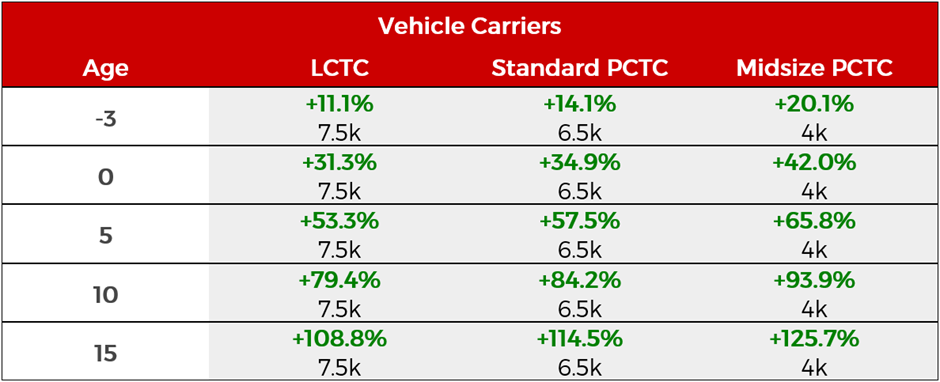 Over the course of the year, 15YO assets more than doubled in value as per VV’s matrix (which displays values for standard vessels across different ages).