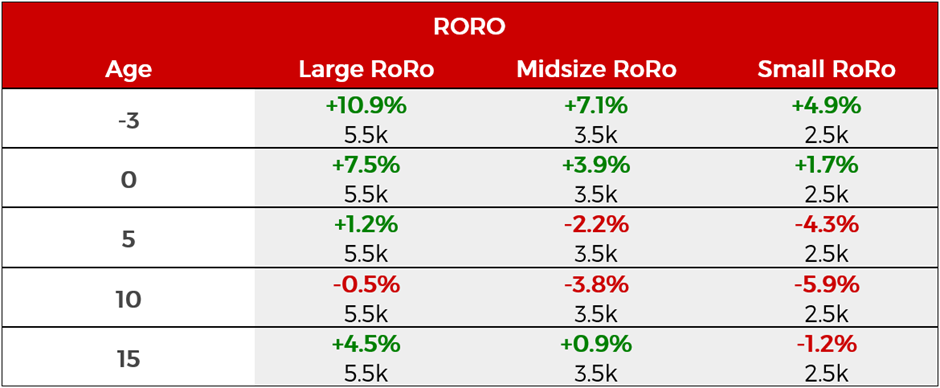 - Balanced supply demand fundamentals, decreased inflationary pressures across Europe, and strong demand for car capacity by OEMs are likely to support RoRo earnings and values into 2024. RoRos continue to be a safe bet for investors