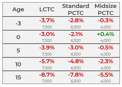 - Values for 10YO LCTCs and PCTCs decreased c.5% in 1H 23.