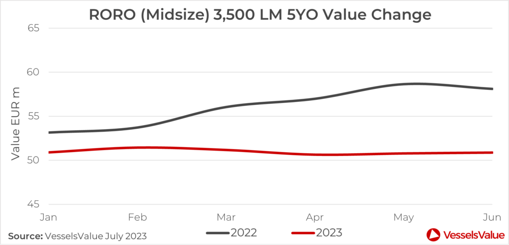 RoRos held their value during the first half of 2023 based on increased buyer interest from the US and Middle East, pushing up secondhand sales prices and stable to firming Time Charters supporting values.