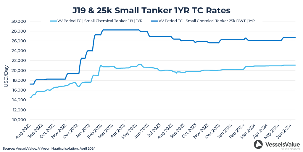 Overall, with high freight rates likely to persist and a small order book indicating sustained demand-supply imbalances, the outlook remains bullish for chemical tonnage. The high valuations seen in recent S&P transactions underscore strong market fundamentals and again suggest that the current uptrend is set to continue. As geopolitical events and natural phenomena continue to shape market dynamics, the chemical tanker sector is poised to respond with strategic M&A activities driving growth and value creation.